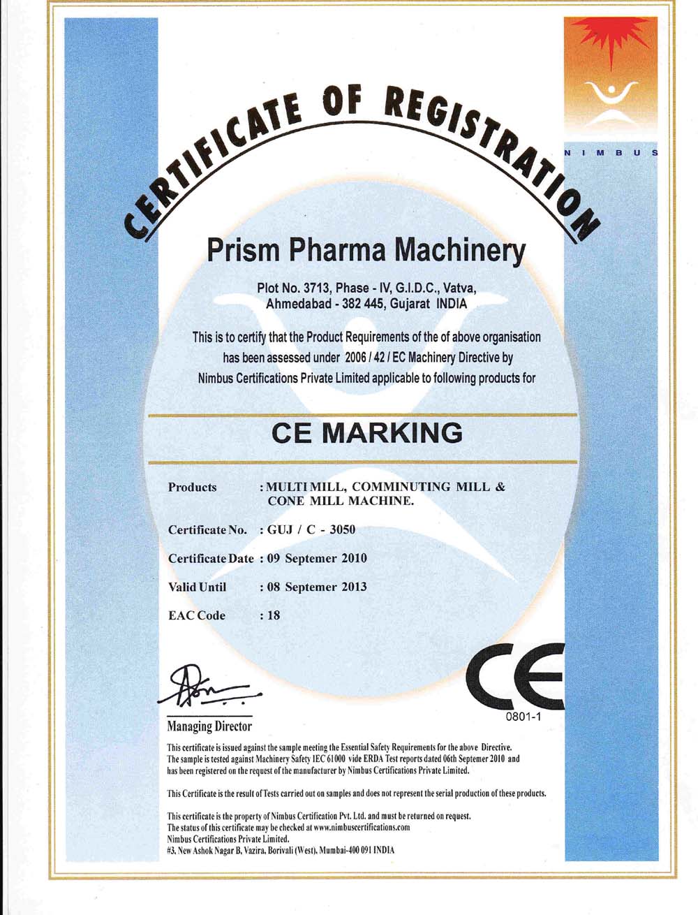 CE Conformité Européene Certificate No GUJ / C - 3050