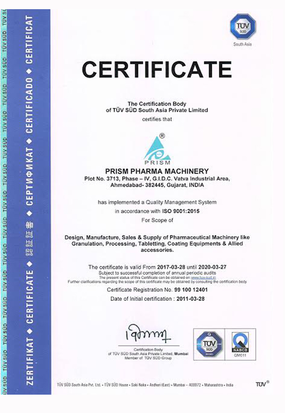 ISO 9001:2015 Certified by TUV SUD South Asia Pvt Ltd ISO